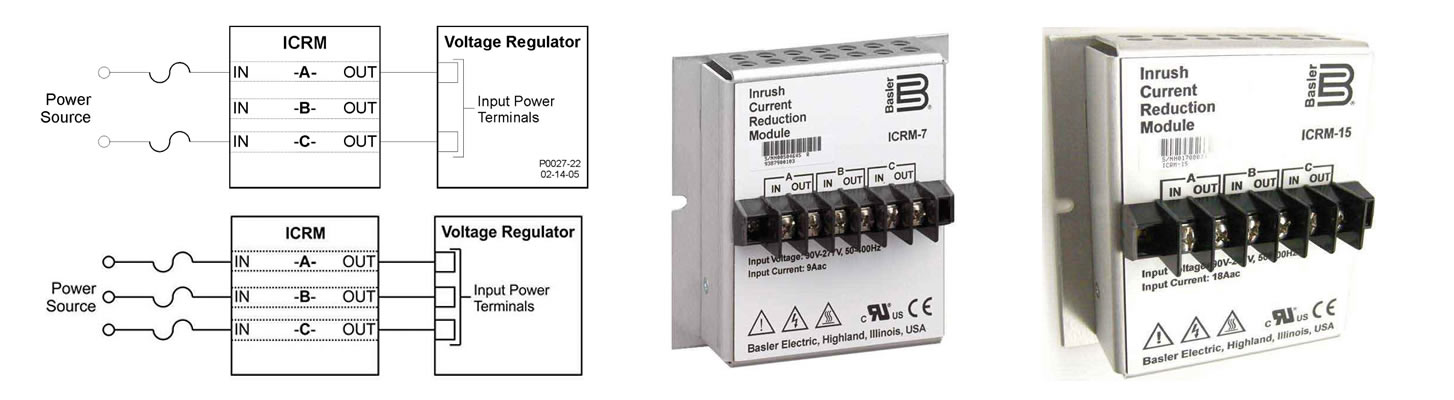 De todos modos, los reguladores de tensión que usan etapas de potencia del tipo SCR no requieren protección de un ICRM dado que estos reguladores no tienen gran cantidad de capacitancia en la etapa de potencia. Cuando un regulador de tensión con una etapa de potencia PWM es energizado, el ICRM limita la corriente de irrupción sumando un alto nivel de resistencia en serie con la entrada de potencia del regulador de tensión. Una vez que la corriente de irrupción desaparece, la resistencia en serie disminuye rápidamente para permitir que la corriente de estado estacionario nominal fluya.